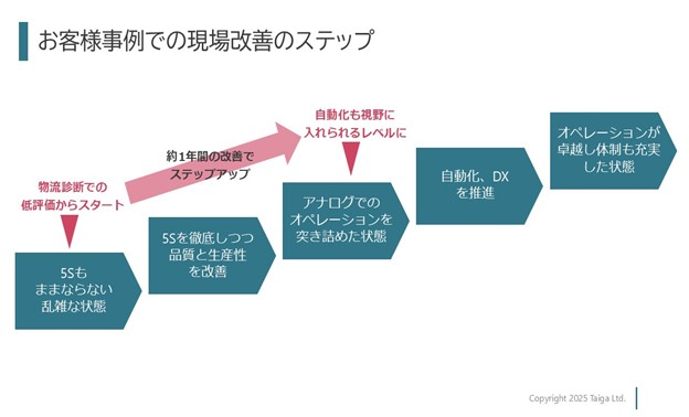 お客様C社は「5S」「安全」「生産性」を皮切りに、この記事の初稿である2025年12月までの1年数ヶ月の間ずっと改善を続けてこられました。