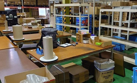 段ボールが作業台の下に置かれていたため、梱包の際にいちいち下から取得しなければなりませんでした。