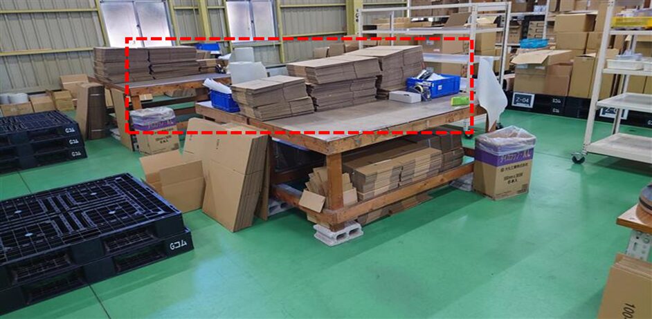 広く使える作業台があったため、その上に一定量の段ボールをまとめて配置しました。